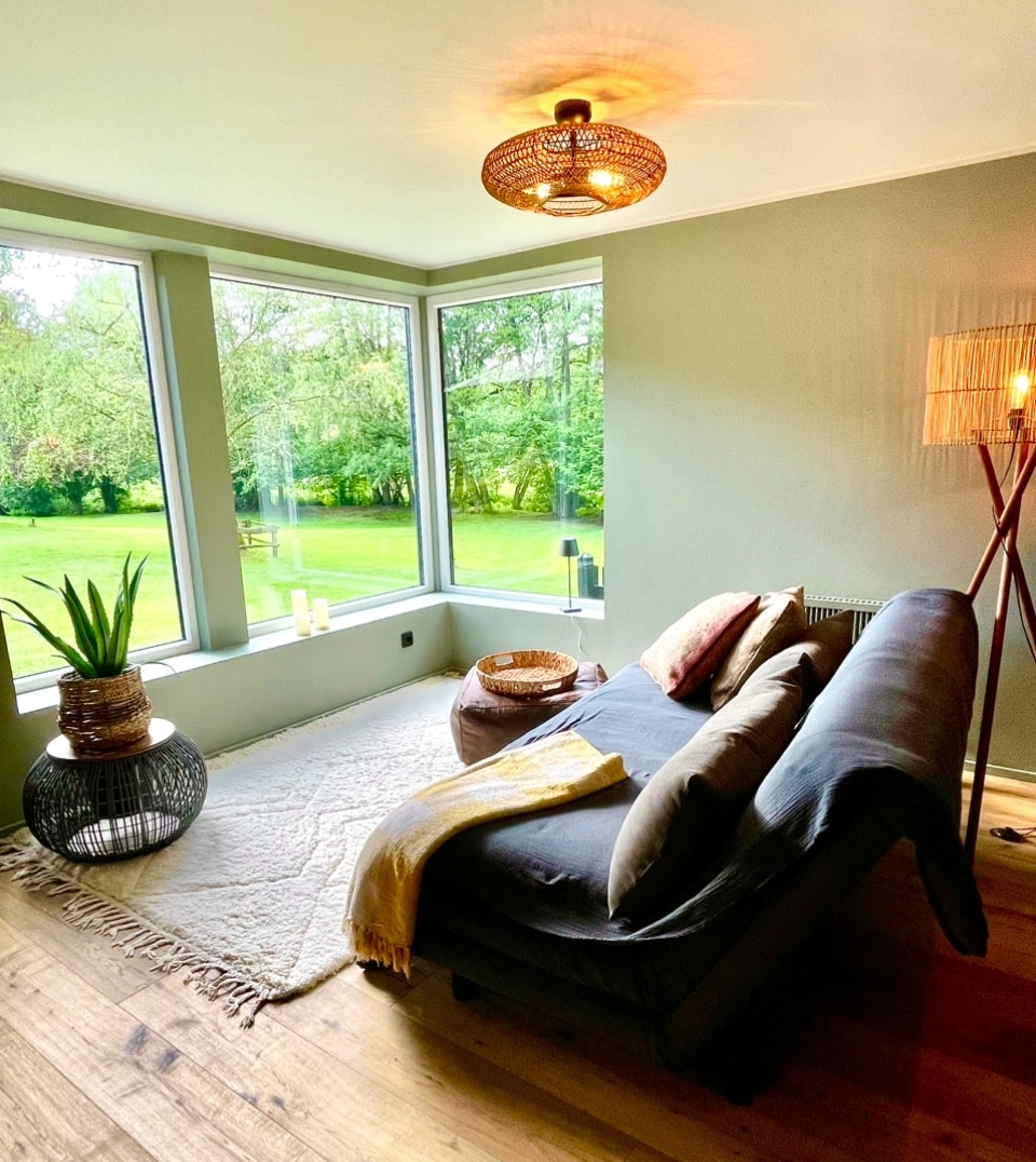 Am Fuße des Wiehengebirges, unter Bäumen, direkt an einem kleinen Bach liegt das 800 m2 große, komplett eingezäunte Grundstück. Dieses Grundstück nutzt ihr ganz für euch alleine. Das Glampingzelt ist mit warmen Farben, einem großen Bett, vielen Kuschelkissen, Decken, Nachttischen, Lampen und einer schönen Sitzecke eingerichtet. Vor dem Zelt ist ein kleiner Lagerfeuerplatz. Unter der großen Trauerweide findet ihr eine romantische Sitzecke mit einem Grill.