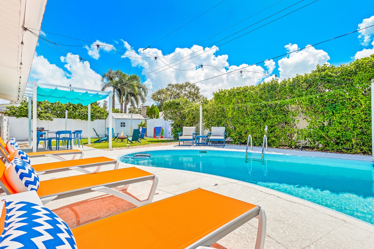 Off the Florida Keys, there's a place called Kokomo, that's where you wanna go to get away from it all...Relax with the whole family at Kokomo House! Bask in a lush, one-of-a-kind backyard with a HEATED pool/hot tub, outdoor dining, fire pit, lounge chairs, & hammock. The backyard is magical in the dark! Play bocce ball, cornhole, foosball, darts, board games, Ms Pacman or on the slackline swingset. 6 miles from Anna Maria Island, ½ mi from Manatee River boat ramp.