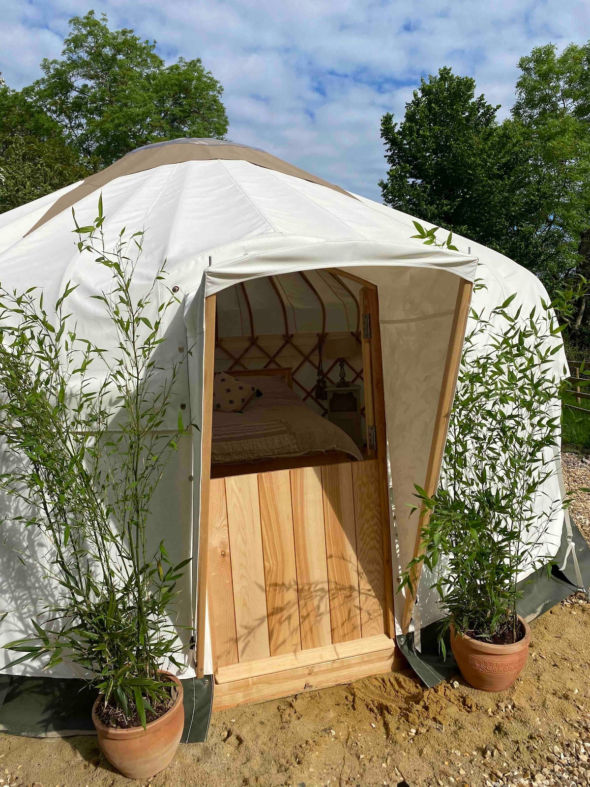 ์ค์ ํ ์ ๋ฅดํธ (Ower Farm Yurt) ๋ ํธ๋ฅด๋ฒก ๋์ฏ (Purbeck Dorset) ์ฌ์ ํ ํ๋ฒ (Poole Harbour) ๊ฐ ๋ด๋ ค๋ค๋ณด์ด๋ ์๋ฆ๋ค์ด ์๊ณจ ๋์ฅ์ ์์นํด ์์ต๋๋ค. ์ ๋ฅดํธ๋ ํ์ง ์ ๋ฅดํธ ๋ฉ์ด์ปค์ ์ํด ํน๋ณํ ์ค๊ณ๋์์ผ๋ฉฐ ์ต๊ณ ํ์ง์ ์ฌ๋ฃ๋ก ๋ง๋ค์ด์ก์ต๋๋ค. ๊ฐ๋ณ๊ณ ๋๊ณ ํตํ์ด ์ ๋๋ฉฐ ๋ํ ์ง๋ถ์ด ์์ด ์์ฐ ์ฑ๊ด์ด ๋ค์ด์ค๊ณ ๋๋ฌผ๊ณผ ์์ฐ์ผ๋ก ๋๋ฌ์ธ์ธ ์ด ์๋ฆ๋ค์ด ๋์ฅ์ ์์ํ ์ง์ญ์ ์๋ฆฌ์ก๊ณ ์์ต๋๋ค. ๊ฒ์คํธ๋ ์๊ตญ์ ์์นจ ์์ฌ๋ฅผ ์ฃผ๋ฌธํ๊ณ ยฃ 12.50 pp์ ์ถ๊ฐ ๋น์ฉ์ผ๋ก ์ ์ ํ ์ปคํผ/ํฐํ์ ๋ฌด์ ํ์ผ๋ก ๋ฐฐ๋ฌํ ์ ์์ต๋๋ค.