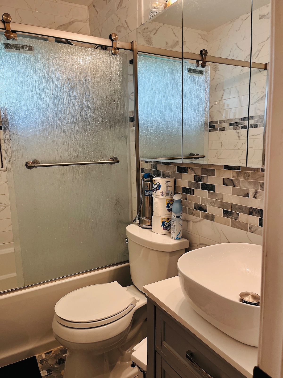 You get everything you see in the pictures, a private suite ready to welcome a last-minute reservation. If you need to check in early or check out late, the host will try to accommodate you when possible. A $70 extra fee applies for a guest who wants to use the second bedroom. It is currently used to keep bedding and linen. It remains locked. The host will always knock or text before entering the living room on the first floor.