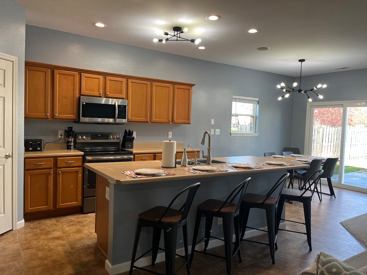 로스-에이드 스타디움에서 불과 1.3마일 거리에 있는 이 업데이트된 숙소에 오신 것을 환영합니다. 다음 웨스트 라파예트 방문에 적합합니다. 메인 층에는 55인치 로쿠 TV가 있는 넓은 거실, 6인용 좌석이 있는 식사 공간, 시설이 완비된 주방, 프리미엄 침구가 있는 퀸 베드룸 2개, 완비된 욕실이 있습니다. 아래층의 완비된 지하실에는 킹사이즈 침실 1개, 완비된 욕실 1개, 55인치 TV가 있는 넓은 휴게실, 푸톤, 테이블과 의자가 있는 게임 공간, 세탁실, 전용 업무 공간이 있습니다.