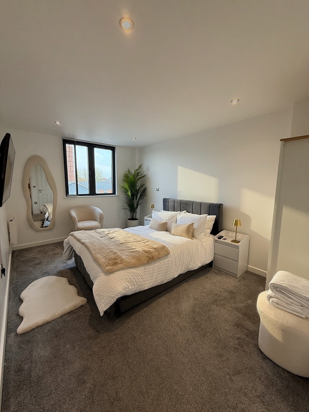 Enjoy a bright, spacious 1-bedroom apartment with a large private balcony and peaceful lake views—a rare find in Birmingham. This modern flat features stylish décor, a fully equipped kitchen, fast WiFi, and a cozy bedroom. Perfectly located near the city centre, restaurants, shops, and major attractions. The ideal blend of comfort, convenience, and relaxation