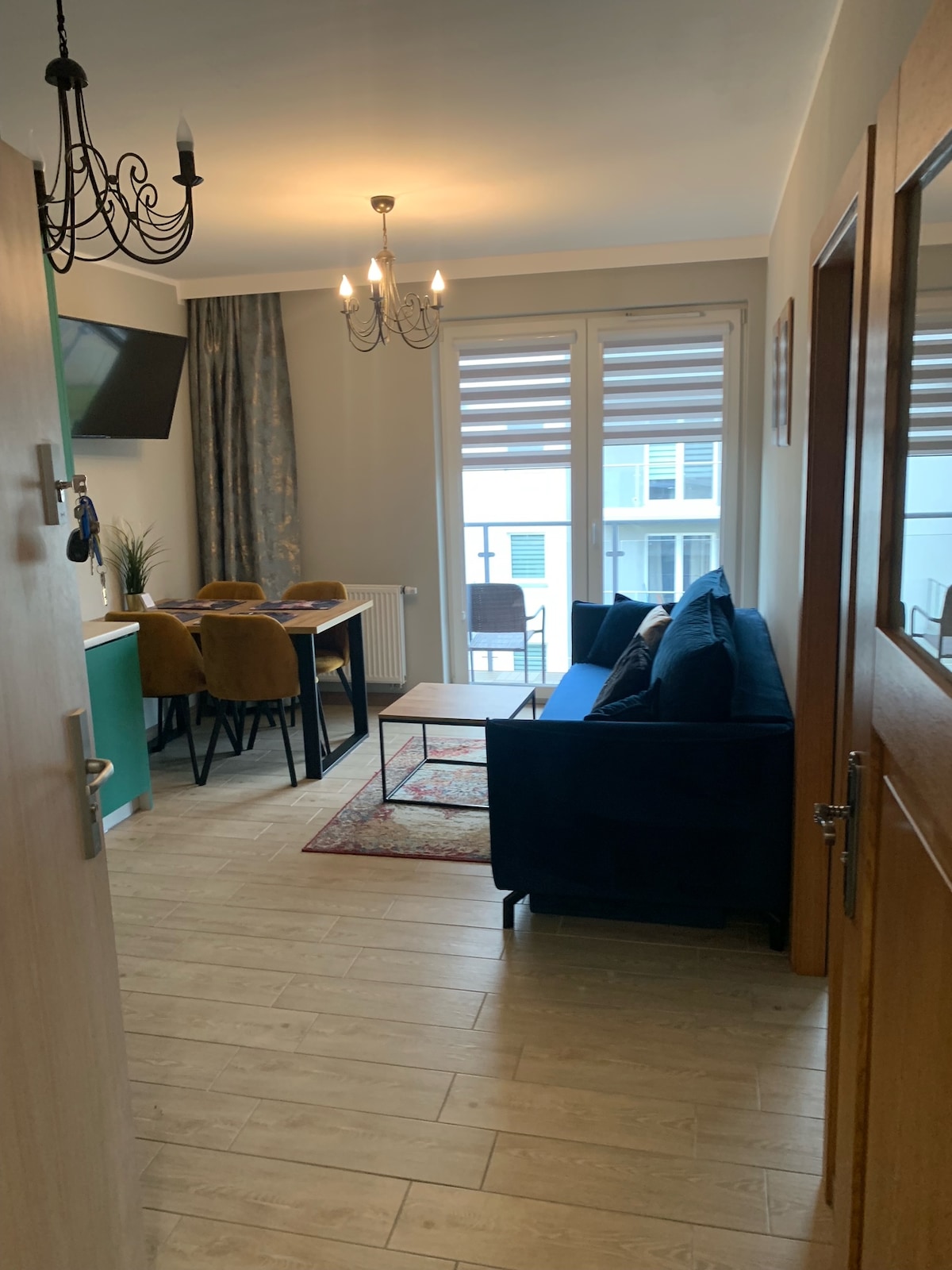 This apartment combines an excellent seaside location with a functional layout and a sense of comfort you feel from the very first moment. Just 300 meters from the beach, set in a quiet area with a park leading to the sea and easy access to Kołobrzeg’s attractions, it is perfect for both short stays and longer visits. Bright interiors, a comfortable living room, balcony, garage included, fast Wi-Fi and Smart TVs ensure a truly relaxing stay. House rules are included in the listing.