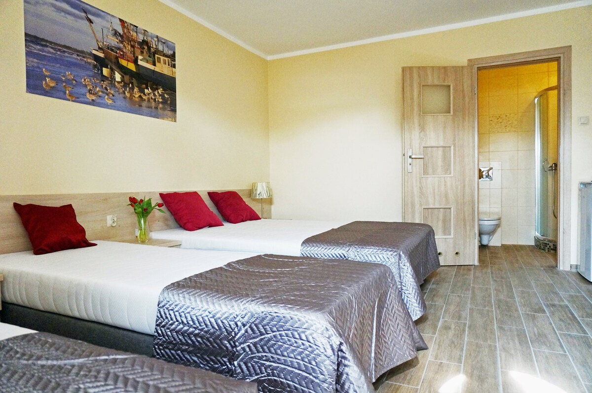저희 집 1층에 위치한 35m2의 면적을 가진 바다 옆의 아파트 2개를 제공하며, 두 아파트 모두 독립된 출입구를 갖추고 있습니다. 42m2 규모의 테라스에는 두 개의 아파트가 있습니다. 이 숙소는 바다 옆의 아름다운 소나무 숲에 위치하고 있으며, 해변에서 도보로 15분 거리에 있는 월린 섬에 위치하고 있으며, 지방 도로 102번을 따라 호수까지 도보로 7분 거리에 있습니다. 지브누프시는 약 1.8km 거리에 있으며, 멘지워지아는 약 2km 거리에 있으며, 자전거 도로나 아스팔트 도로가 있습니다.