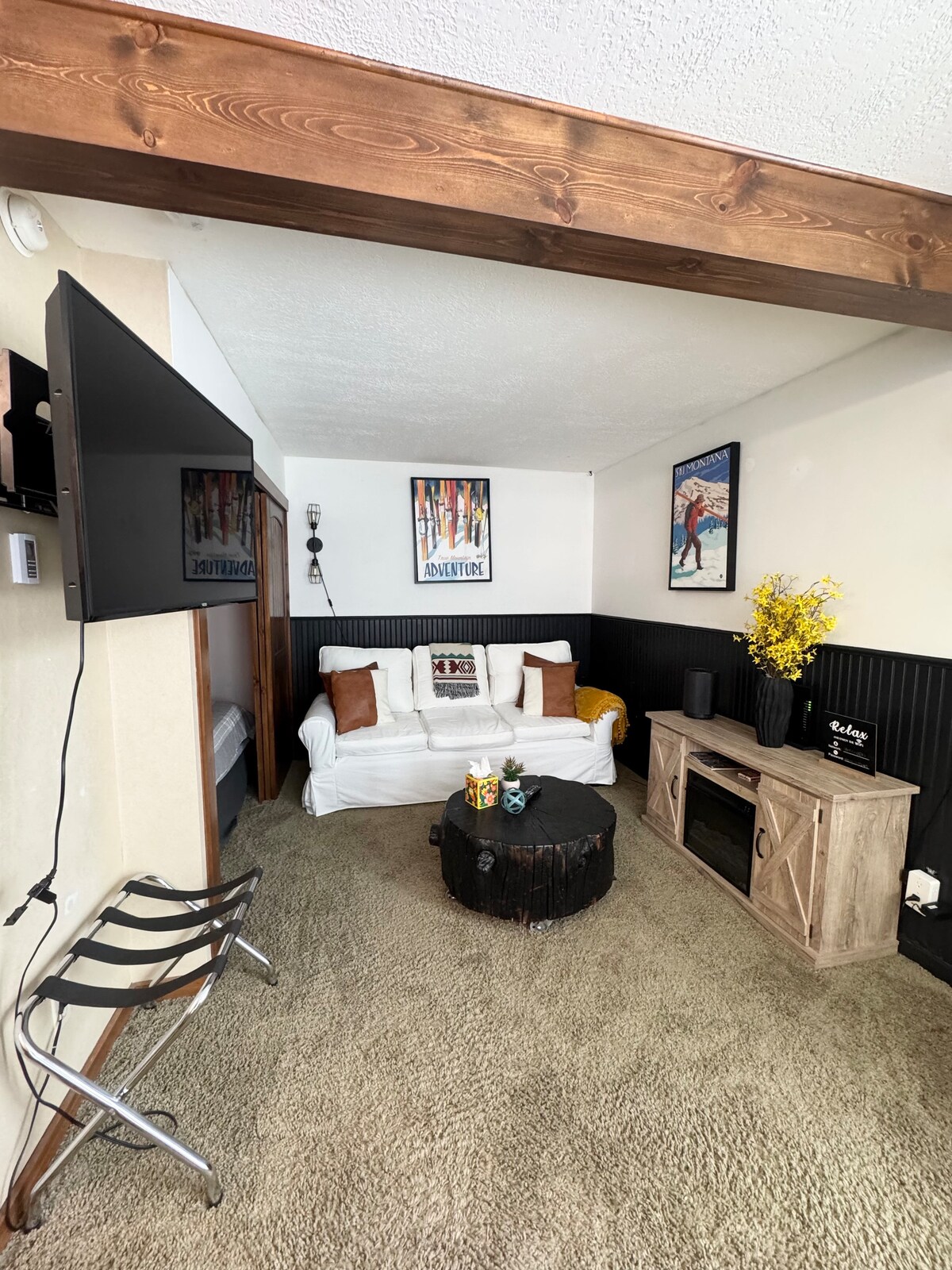 산에서 가까운 아늑한 1층 스키 콘도. 퀸사이즈 침대와 이층 침대가 있는 침실 2개에서 프라이버시를 누리세요. 주방에는 기본적인 것들이 구비되어 있습니다. 힐 콘도는 모든 편의시설을 갖춘 컨퍼런스 센터와 마운틴 빌리지에서 도보 거리에 있어 스키 산으로 편리하게 이동할 수 있습니다. 이 콘도는 아름다운 론 마운틴의 전망은 말할 것도 없고 열쇠가 없는 출입구, 블루투스 스테레오, 스마트 TV를 제공합니다. 440평방 피트이며 리조트까지 0.5마일 미만 거리에 있습니다.