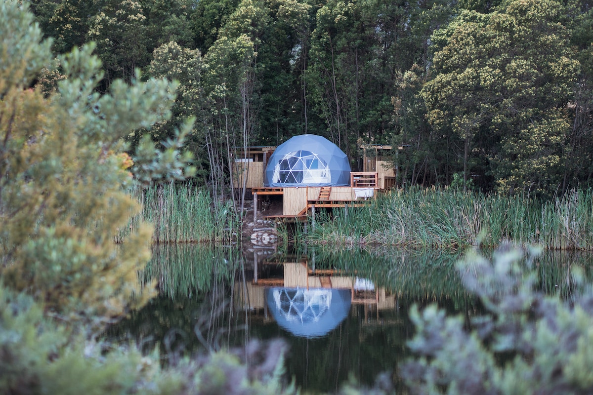 We are proud to present the Geodome experience, nestled up against the Witzenberg mountain range about 9km from the historic town of Tulbagh. We have created this unique rental situated in our favourite part of a 222 hectare farm. Swimming, fishing, mountain biking, hiking and enjoying nature are some of the favourite activities our guests enjoy.