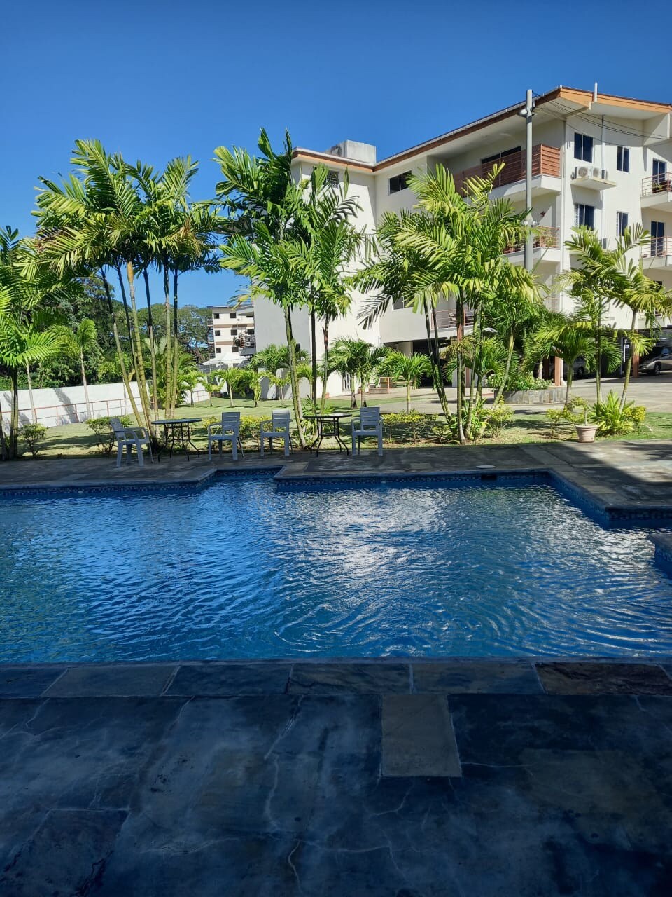 - Modern 2-bed, 2-bath GROUND FLOOR condo in Tobago - King suite: ensuite bath, mini fridge, private cable TV - Second bedroom: double-decker bed (adults/kids) - Fully equipped kitchen - In unit washer, dryer, iron & ironing board - WIFI - Hot & cold water, blowdryer, board games - Picture-worthy egg swing nook - Large shared pool - Food Court - 24-hour security - 5 mins to Buccoo Beach - Under 15 mins to the airport & ferry terminal