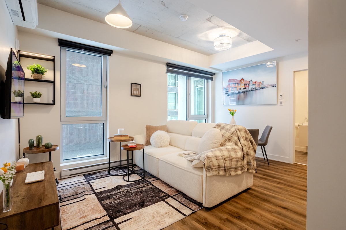활기찬 몬트리올의 트렌디하고 현대적인 가구가 완비된 아파트에 오신 것을 환영합니다. 엔터테인먼트를 위한 스마트 TV를 즐겨보세요. 퀸사이즈 침대가 있는 편안한 침실. 넓고 현대적인 욕실. 집처럼 편안한 느낌을 주는 꼼꼼한 디테일. 시내 중심가에서 몬트리올의 활기찬 리듬을 느껴보세요. 고급 가구가 완비된 아파트. 새로운 생활 공간에 오신 것을 환영합니다.