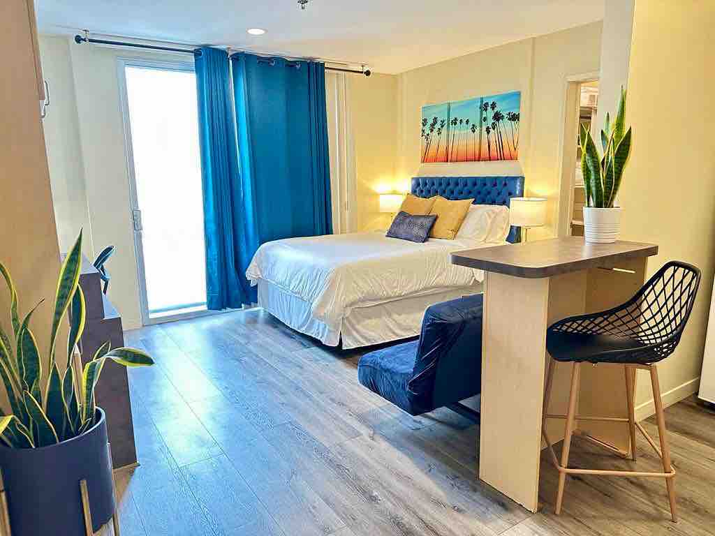 Excellent Location!! 5 🌟 Walking To: Beach 🏖 Pier 🎡 Promenade Restaurants/Bars 🥂 Shopping 🛍 Coffee Shops ☕️ 🍩 Centrally Located in the Heart ❤️ of DT Santa Monica! Professionally Managed, Cleaned, and Sanitized 🧼 🧽 Fully Equipped Suite with all the Essentials! We Include: ✅ Free Gated Parking/WiFi ✅ Stocked Kitchen & Bathroom ✅ Desk ✅ A/C ✅ Linens & Soaps ✅ Keurig/Drip Coffee *Latest check-in permitted is 11pm, pls ensure you will arrive to the property by 11pm *TWO GUEST MAX