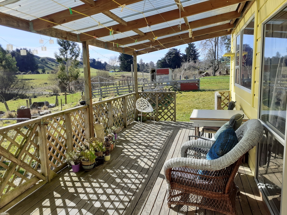 Come back in time with us. Just 24km from State Highway 1 you enter the hidden world of Rangiwahia. Rangiwahia is quiet, ideal for downtime or a good nights sleep whilst travelling. Enjoy relaxing on a sun soaked back porch with birds swooping by, or cuddle up by the fire when it's chilly. 3 neighbouring Native Reserves give a range of Bush walks. It's a great base for local activities. Clear creek to cool down in or great swimming holes only a short drive. We are on the NZ Cycle trail.