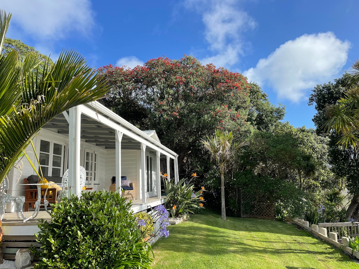 This family house is located directly on the harbourside boasting wraparound decks offering amazing views of McLeod Bay, Mount Manaia, and Mount Albury. There are 4 bedrooms : three inside the house with a large bathroom, and a private cabin off the deck with it's own ensuite bathroom and private garden deck overlooking the bay. Living rooms are large and beautifully decorated to a relaxed resort-style atmosphere, opening out onto the massive wraparound deck.