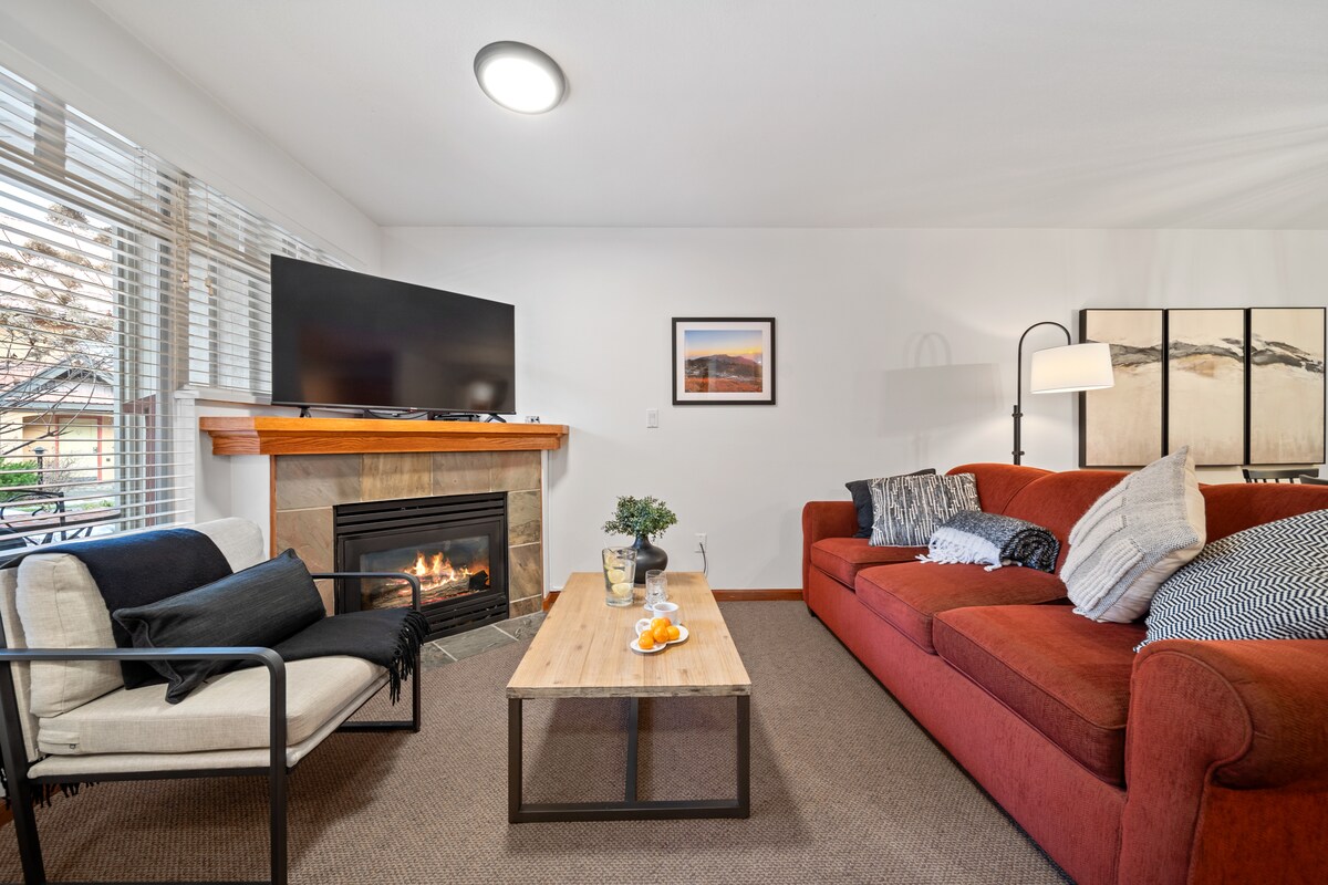 벽난로와 편리한 곤돌라 접근성을 갖춘 2BR 스키 리트리트
