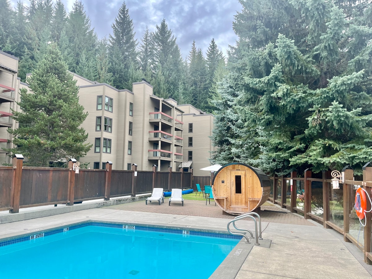 센트럴 휘슬러 빌리지의 침실 2개! 수영장, 온수 욕조, 사우나