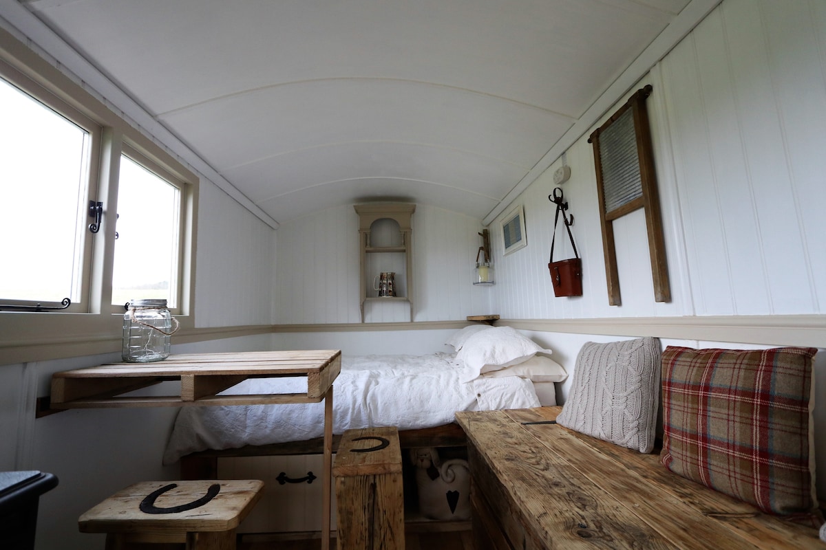 Available April - October. Located in our meadow & close to woodland, our 2 off-grid (no electricity) Shepherd Huts sit side by side & share facilities. Deer's Leap and Hide & Sea huts each sleeps 2 provide a complete getaway & cozy retreat for camping with a difference. Campfire area with firepit, bbq & seating. Great experience for couples just wanting to escape & drop out for a while. Wake up to beautiful sunrises, peaceful surroundings & enjoy the great views over the moors & to the sea.