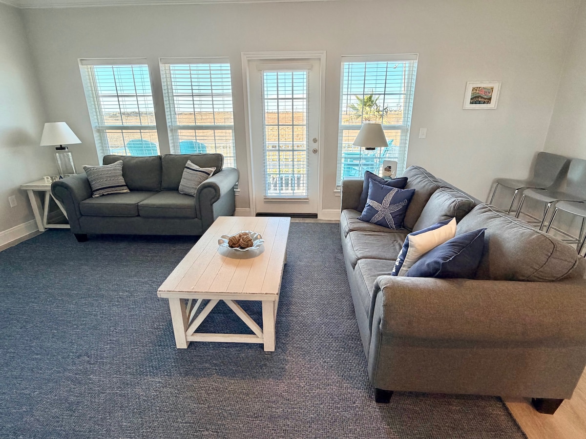 포트 A의 나마스타이는 11번가에서 떨어진 2층짜리 엔드 유닛 타운하우스로 게스트를 기쁘게 할 것입니다! 해변에서 단 3블럭 거리에 위치한 이 아름답고 넓은 숙소는 침실 3개와 욕실 3.5개를 갖추고 있어 8명이 편안하게 잘 수 있습니다. 사다리를 통해 접근할 수 있는 전망대가 딸려 있으며 해변을 향한 전망대가 있습니다. 바람에 흔들리는 넓은 해변 잔디, 사구, 바다 전망을 감상할 수 있는 이 전망대가 마음에 드실 거예요! 별을 감상하거나 오후에 책을 읽으며 휴식을 취하기에도 좋은 장소입니다!