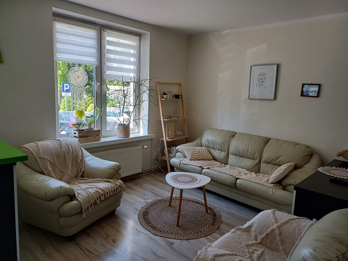 농업 관광 - Karwik 정류장은 마주르의 초원, 호수 및 숲 사이에 위치한 주택입니다. 집은 3개의 부분으로 구성되어 있습니다. 하나는 소유자가 차지하고, 두 개(각각 별도의 입구와 테라스가 있는)는 손님을 위한 것입니다. 집 주변에는 녹지 공간과 초원이 있으며, 그릴 세트가 있는 정자, 별도의 캠프파이어 장소, 모래사장과 트램펄린이 있는 나무 놀이터, 휴식을 위한 해먹과 일광욕용 의자가 있습니다. 환영합니다!