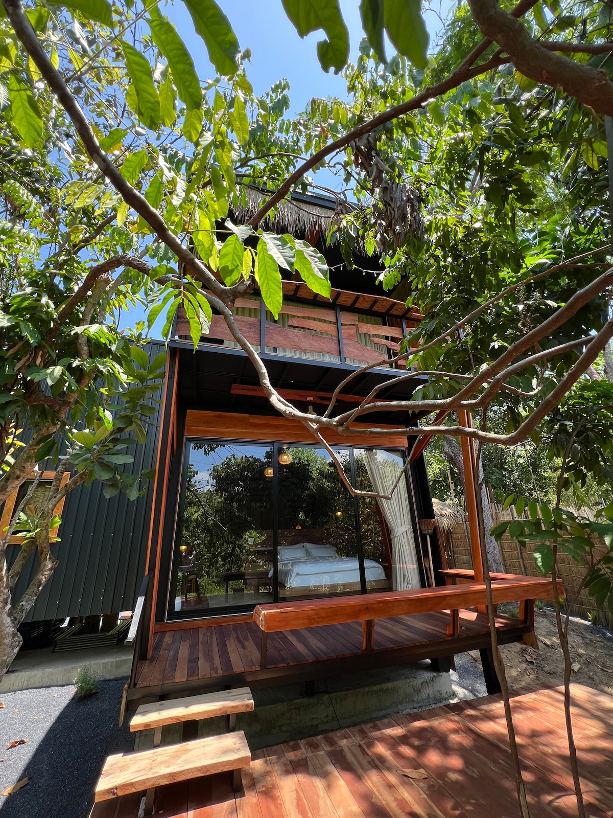 평화로운 외부인 출입 제한 단지에 위치한 아늑한 정원 게스트하우스 편안한 거실 공간, 전용 정원, 주방이 있는 넓은 1베드룸 게스트하우스입니다. 나이 한 해변에서 불과 2km 거리에 있는 조용하고 안전한 커뮤니티에 위치해 있습니다. 편안하고 프라이빗한 숙박을 원하는 커플이나 나홀로 여행객에게 적합합니다.