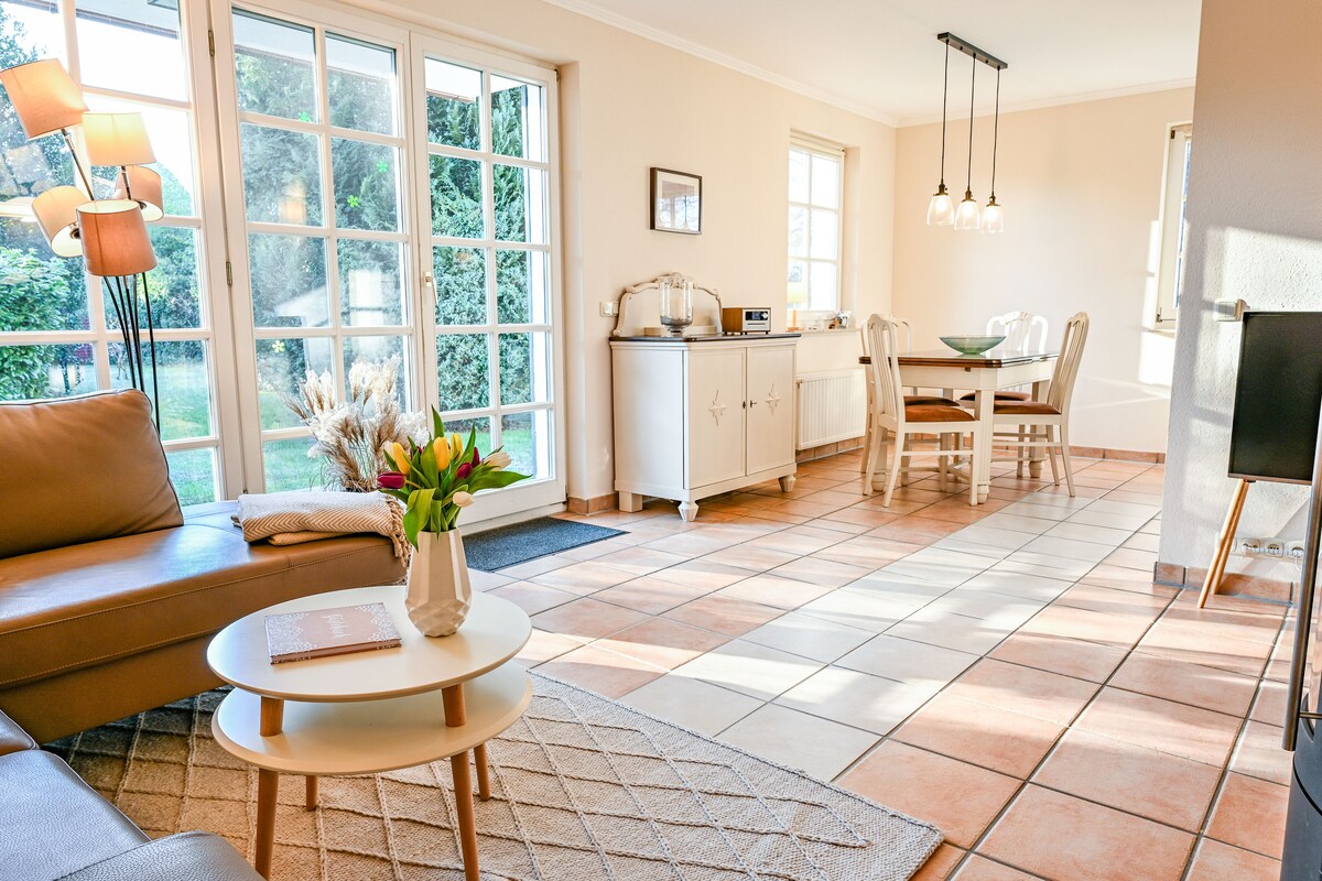 사랑스럽게 꾸며진 목조 주택은 130㎡의 공간을 친구와 가족에게 제공합니다. 관광 명소에서 벗어나 자연 속에서 평화롭고 조용한 시간을 보내실 수 있습니다. 보덴 풍경을 감상하며 산책을 즐기고, 테라스에서 일광욕을 즐기고, 벽난로 앞에서 아늑한 시간을 보내며, 사슴과 학이 서로 인사를 나누는 넓은 들판의 전망을 감상할 수 있습니다. 수상 스포츠 애호가들을 위한 가장 가까운 핫스팟은 불과 몇 분 거리에 있으며, 아름다운 발트해 해변은 25분 거리에 있습니다. 반려견은 매우 환영합니다.