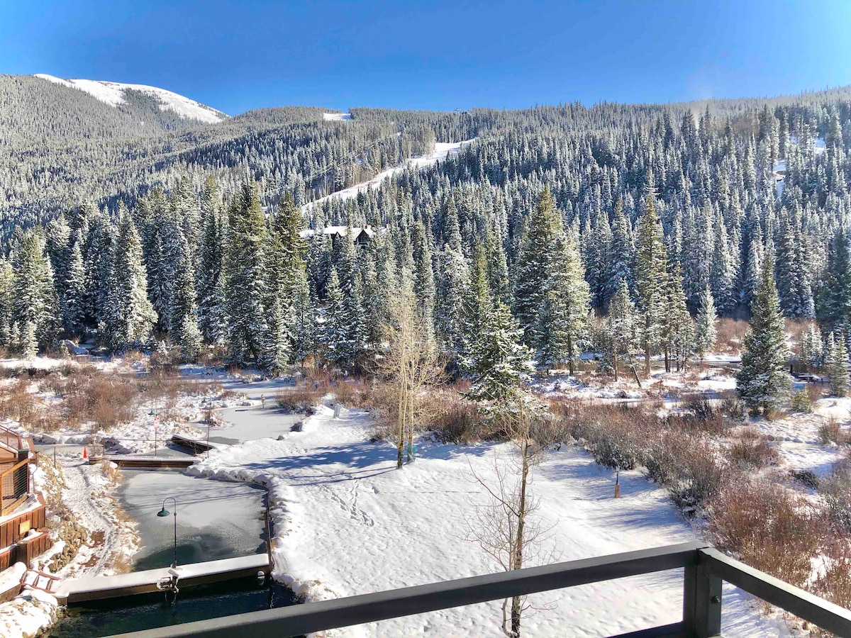 무료 주차장 및 초고속 인터넷. 텐마일 크리크가 내려다보이는 전용 발코니가 있는 855평방 피트 콘도. 시설이 완비된 주방, 가스 벽난로, 발코니, 넷플릭스/스마트 TV를 즐기세요. 버스 정류장이 바로 앞에 있으며 7분 안에 코퍼 산에 도착합니다! 세계적인 스키 리조트(베일, 브렉, 키스톤 등) 근처의 중심지에 위치하고 있으며, 테닝크리크와 자전거/레크리에이션 경로가 몇 걸음 거리에 있습니다. 메인 스트리트까지 걸어서 쇼핑과 식사를 즐기세요. 딜런 호수(0.7마일)에서 보트, 패들보드를 대여하세요.