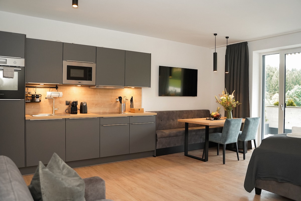 사랑과 스타일리시함이 가득한 아파트. ❤️ 조용한 38㎡ 아파트에는 식기세척기가 완비된 주방, TV가 있는 식사 거실 공간, 160 x 200 더블 침대, 샤워기가 있는 욕실, 와이파이, 테라스가 있는 자연을 향한 대형 유리 문이 있습니다.🏔️ 아파트 앞에 무료 주차장이 있습니다.🚗 빌더카이저 브릭센탈 스키월드로 가는 스키 버스까지 도보 1분 🚌⛷️🚠 레크리에이션, 스포츠, 소풍을 즐기기에 이상적인 출발점입니다. 나에게 휴식의 시간을 선물하세요 😍❤️😍