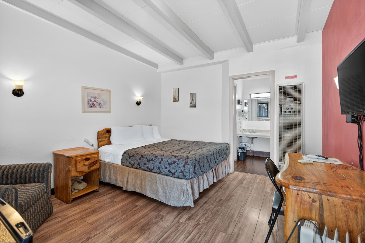 탐험하고 싶은 모든 것이 이곳의 문 바로 앞에 있습니다. 퀸사이즈 침대 1개, 2인용, 전자레인지, 냉장고, 무료 와이파이, 무료 셀프 주차, 1층에 있는 모든 객실, 케이블 채널, LED TV. 반려동물과 함께 여행하는 게스트에게는 환불되지 않는 반려동물 청소비가 부과됩니다. 객실당 최대 반려동물 1마리. 1박당 20달러가 객실 요금에 포함되지 않습니다. 체크인하시면 이 금액을 지불하셔야 합니다. 반려동물 방은 보장되지 않습니다.