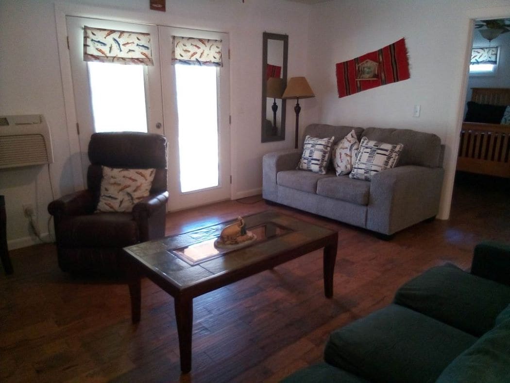 저희 숙소는 기둥 헛간, 화덕, 숯 그릴에서 그네를 타는 등 공원 같은 분위기를 제공합니다. 멋지게 꾸며진 내부는 얼룩이 있는 콘크리트 바닥과 욕실 2개로 더블헤드 샤워실과 옷장/세탁실이 있습니다. 마스터 스위트에는 TV가 있는 킹 사이즈 침대가 있습니다. 두 번째 침실에는 TV가 있는 퀸사이즈 침대가 있습니다. 거실/주방 공간은 퀸사이즈 송풍 매트리스를 놓을 수 있는 오픈 콘셉트입니다 (포함). 풍부한 야생동물을 감상하기에 완벽한 환경입니다.