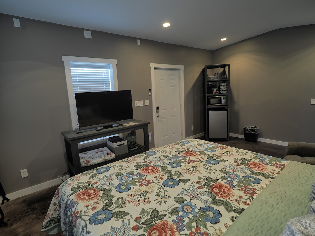 평화롭고 프라이빗한 스튜디오 아파트에 오신 것을 환영합니다. 오스틴을 테마로 한 이 휴양지에는 편안한 퀸사이즈 침대, 트윈 풀아웃 소파, 작은 간이 주방, 큐리그 커피 메이커, 미니 냉장고, 편리한 휴대용 컨벡션 쿡탑, 워크인 샤워실, 현관도 마련되어 있습니다. 전용 출입구와 별도의 측면 마당 공간을 즐기세요. 반려동물과 함께 차분하고 조용한 공간에서 휴식을 취하기에 이상적입니다. 별도의 침실이 없으며, 1~2명에게 이상적이며 최대 3명까지 수용할 수 있습니다. 3명 이상의 게스트는 추가 요금이 부과됩니다.