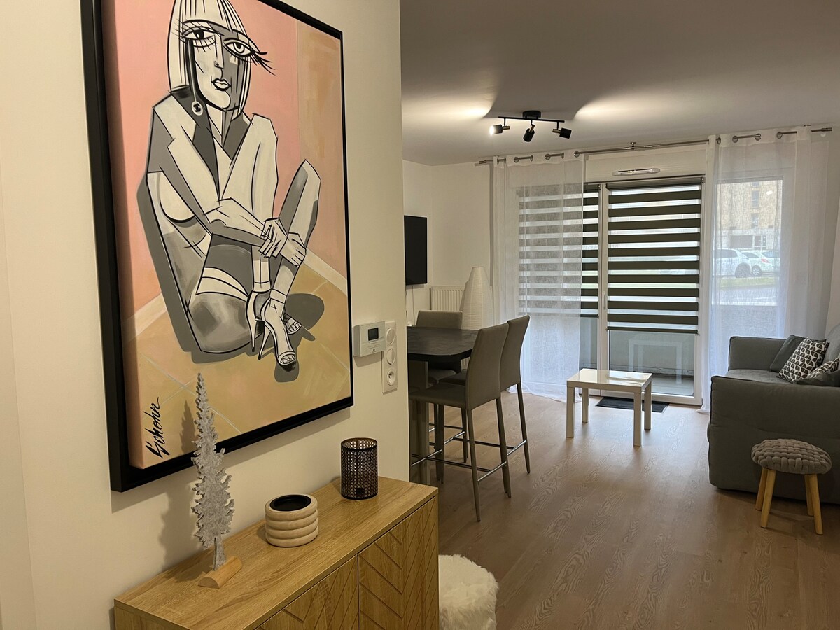 Studio 30 m2 The Natural in WIMEREUX. The living room has a beautiful terrace with breathtaking views of the sea and the Japanese garden. Comfortable, equipped kitchen, dining area, storage furniture, lit sofa + 2 built-in parts (door between the 2 pieces for privacy crusher). NB: towels and sheets not provided. TV and free wifi. Private parking. Hiking path at the foot of the residence + amenities, pharmacy and restaurant within 5 minutes walk. No pets allowed