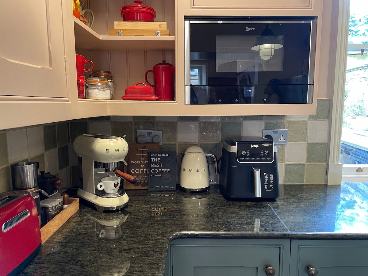 The Bolt Hole is a charming, refurbished, dog-friendly, Cotswold stone cottage, central to pubs and cafes - Late check-out 11 am + NO cleaning or Airbnb fees - Easy FREE on-street parking - Log burner + dishwasher + Washing Machine - V Comfortable UK King mattress - Fantastic walks from doorstep - En-suite: new large shower 🚿+ roll-top bath 🛀 - Smart TV - Cot and highchair Nestled in the heart of stunning Winchcombe, steps from pubs, restaurants, cafes, and historic Sudeley Castle.