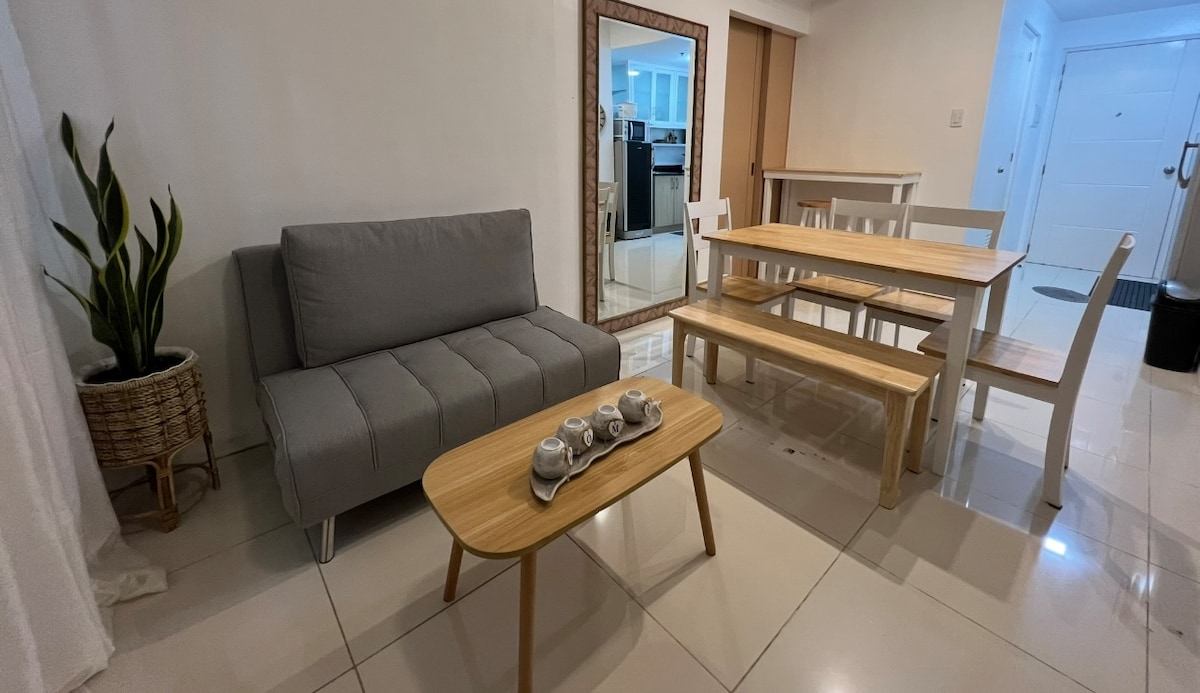 Your home away from home awaits. Relax with the whole family or groups at this peaceful, comfortable, and convenient place to stay. With complete kitchen, dining area, TV with Netflix, and a veranda overlooking the amenities. Located just 5 mins from Skyranch, and close to restaurants, supermarkets, and popular sightseeing spots. The unit features 2 t/b, a complete kitchen, dining area.