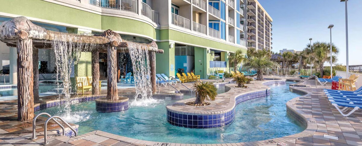 신형 소파 새 세탁기 및 건조기 새로운 주방 새 욕실 벽난로 및 TV 벽 콘솔이 새로 추가되었습니다. 모든 목재 바닥, 새로운 가구 및 매트리스로 리노베이션되었습니다. 머틀 비치의 중심에 위치한 바로 앞 발코니를 통해 대서양의 놀라운 전망을 감상할 수 있습니다. 패밀리 킹덤 놀이공원, 비치 보드워크, 2번가 부두에서 몇 걸음 떨어져 있습니다. 발코니에서 멋진 전망과 바람을 즐겨보세요. 실내 & 실외 온수 수영장, 온수 욕조 3개, 대형 어린이 수영장, 게으른 강.