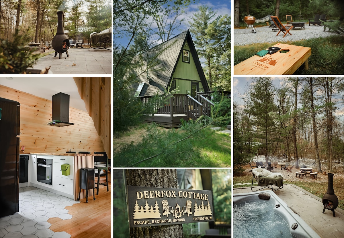 DeerFox Cottage에 오신 것을 환영합니다. 나무, 사슴, 여우, 돌아다니는 칠면조, 신선한 공기가 가득한 전원적인 휴양지입니다. 아름다운 산책로, 호수, 골프장, 낚시터와 가까운 이 작은 A자형 숙소는 혼자만의 시간을 보내기에 좋은 곳이며, 재충전을 위한 안전한 안식처이거나 가족이나 친구와 함께 좋은 시간을 보내기에 좋은 곳입니다. 숲의 고요함을 듣고, 온수 욕조에 몸을 담그고, 불이 타는 것을 감상하세요. 속도를 늦추고 순간을 음미하세요. 일상으로부터의 평화로운 탈출이 연중 내내 여러분을 기다리고 있습니다.