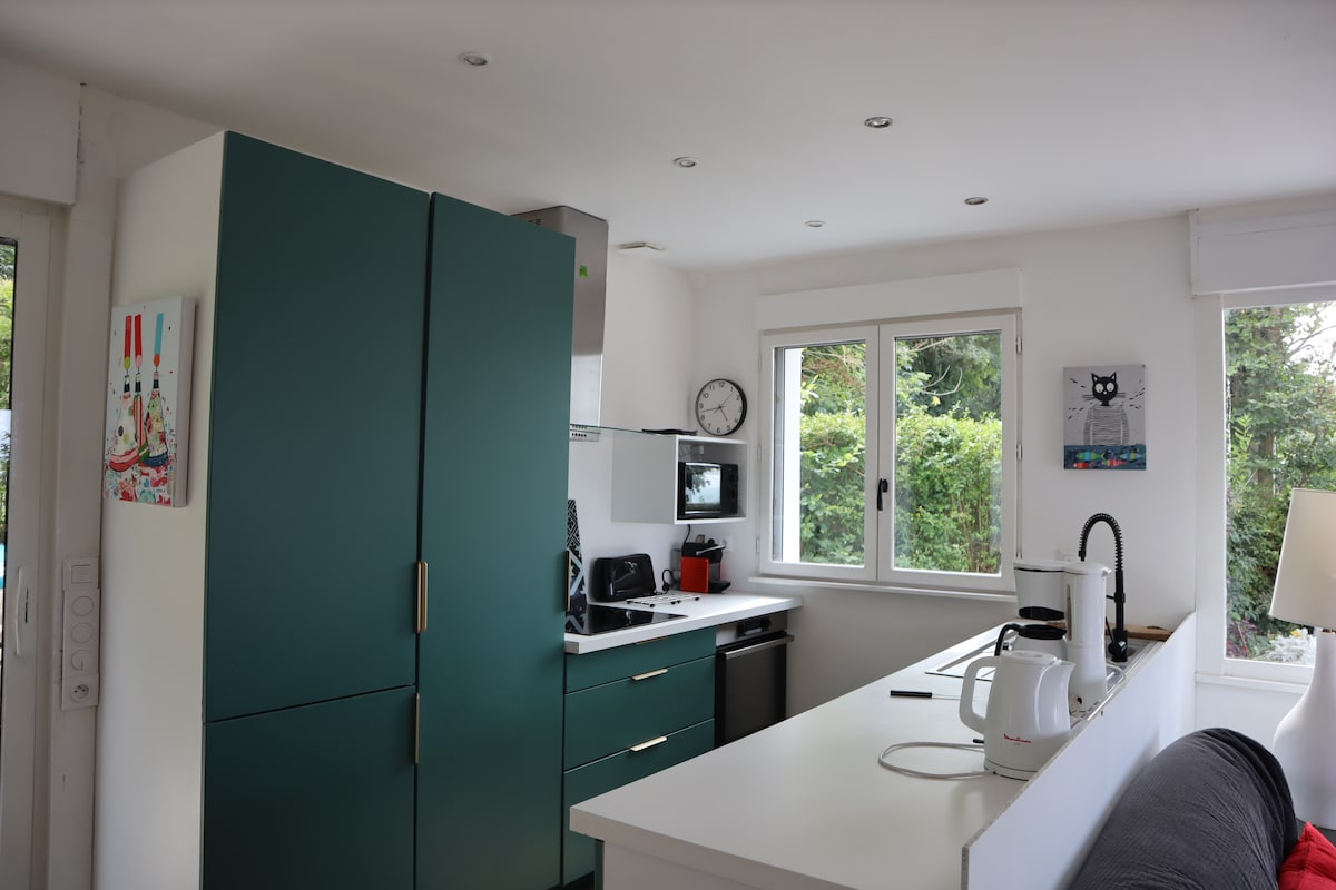 ✨ 해안가 주택 1층에 위치한 최상급의 신축 아파트인 Hortense의 오두막에서 위상트에서 요오드 풍부한 휴식을 즐기세요. 2인 숙박에 이상적입니다. ☀️ 남향으로 하루 종일 채광이 좋습니다. 현대적이고 잘 관리된 인테리어, 최신식 편의시설, 탁월한 편안함 덕분에 완벽한 안식처가 되어 줍니다! 🌊 숙소 입구에서 5미터 거리에 제방이 있어 바닷바람과 일몰을 즐기기에 안성맞춤입니다. 아파트에는 바다 전망이 없습니다.
