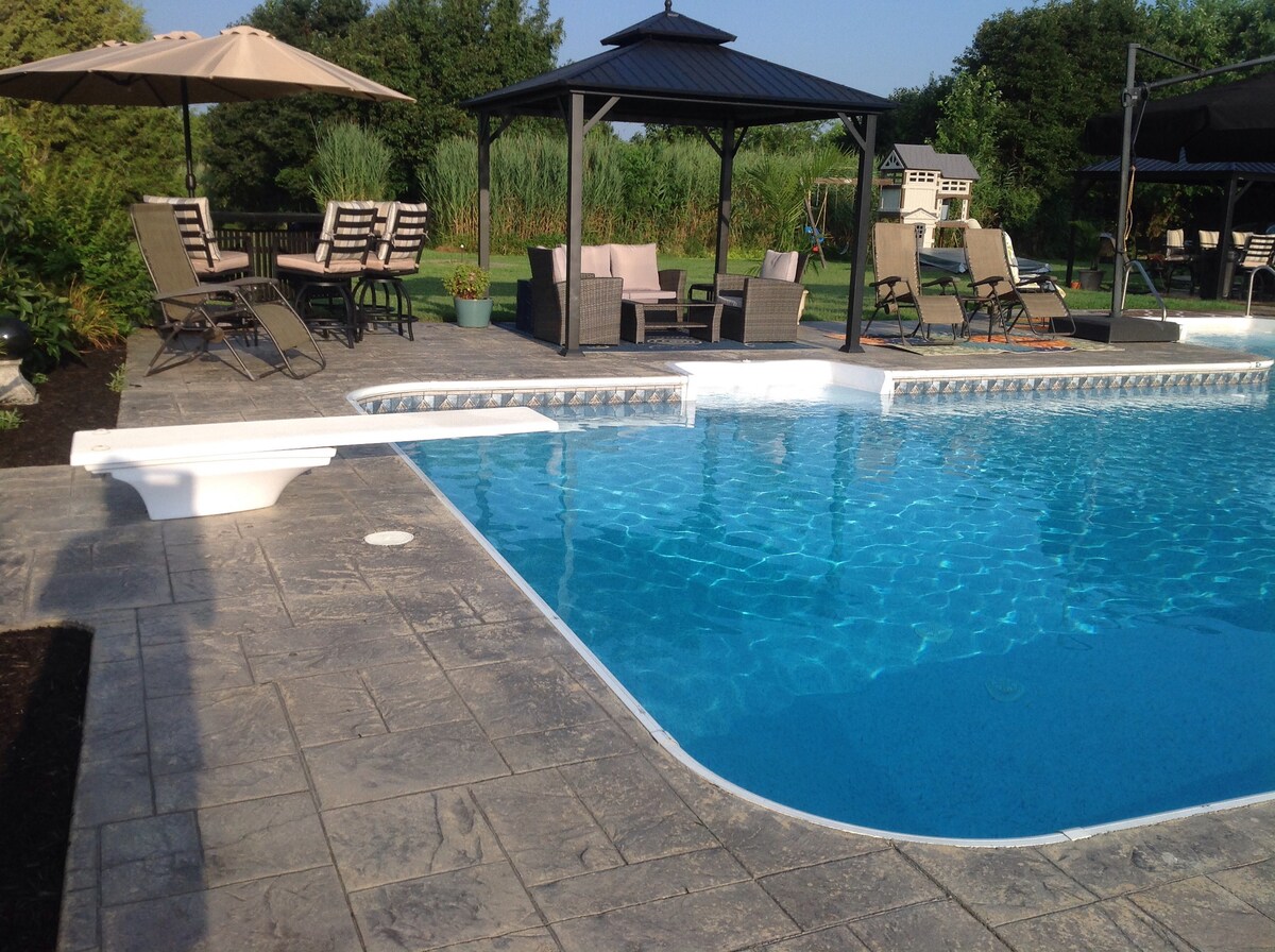 Enjoy this newly renovated, waterfront private studio apartment with a beautiful view of the Chesapeake Bay. It's a perfect getaway for anyone looking for rest and relaxation amidst a quiet, breath-taking location. Enjoy swimming in the pool, fishing off the point, sitting around an evening gas fire, visiting any of the local sandy beaches, or simply watching stunning sunsets from a private patio. Ample parking, WiFi, TV, boat-ramp access. One pet is welcome.