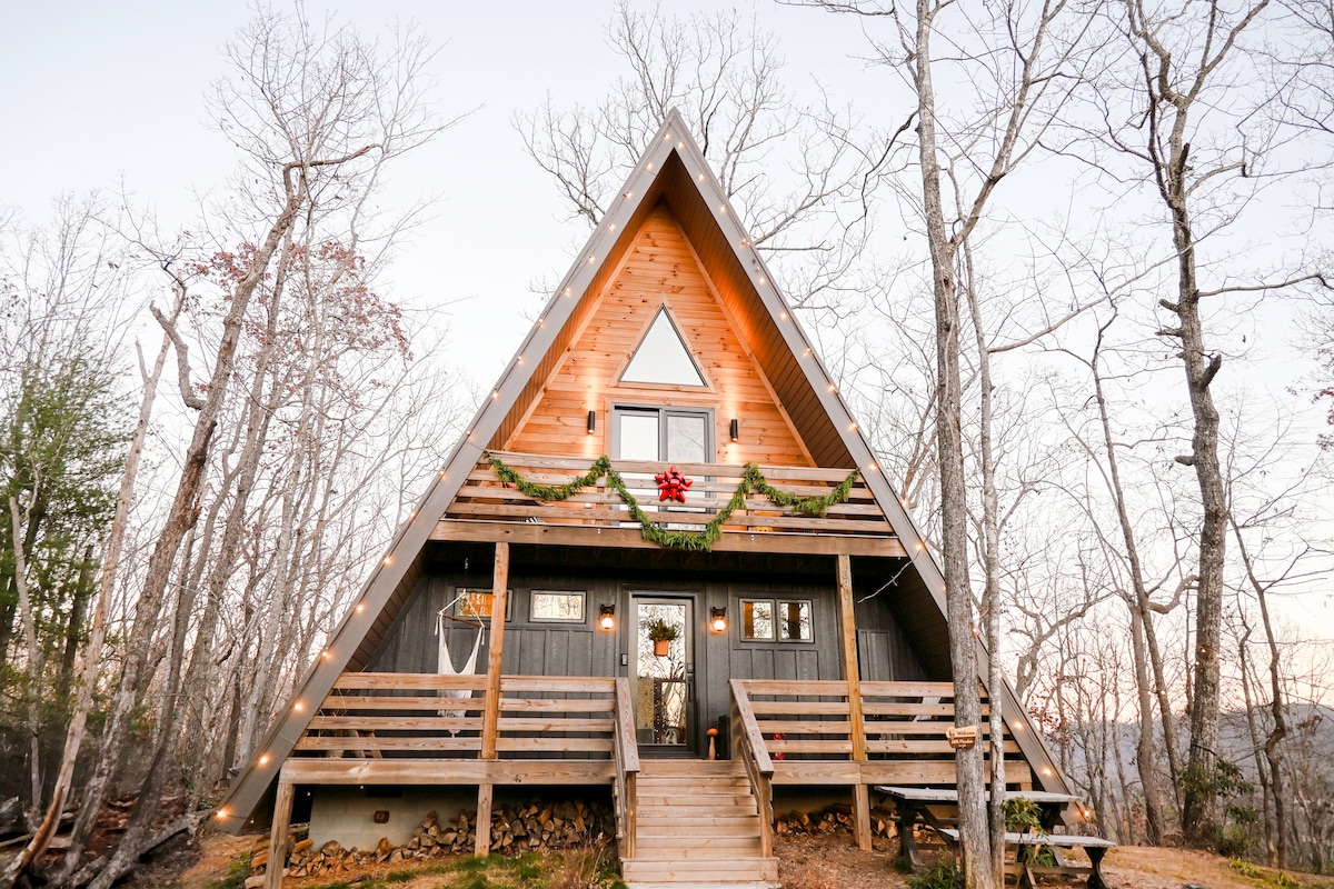 새로운 로맨틱한 A자형 통나무집, 넓은 전망, 온수 욕조!
