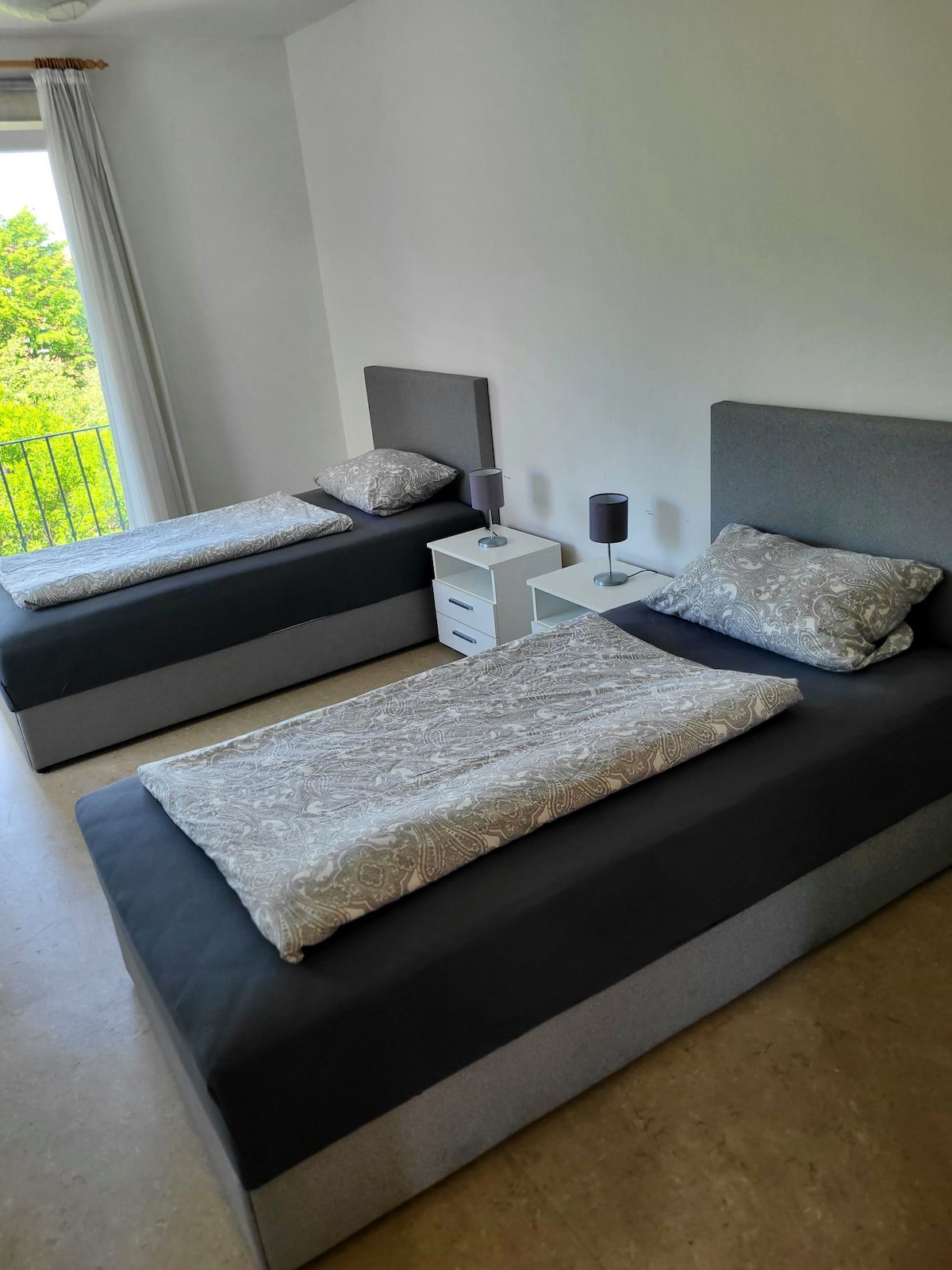 Wunderschöne, komplett sanierte 2 Zimmer Wohnung mit Balkon und schönem Gartenblick. Grosses Wohn-Esszimmer mit offener Küche, Bad mit Dusche und Badewanne und einem grossen Schlafzimmer mit Boxspringbett 180cm x 200cm. Alles kompl. ausgestattet. Die Wohnung befindet sich im 1. OG. Die Gastgeber wohnen im Erdgeschoß.