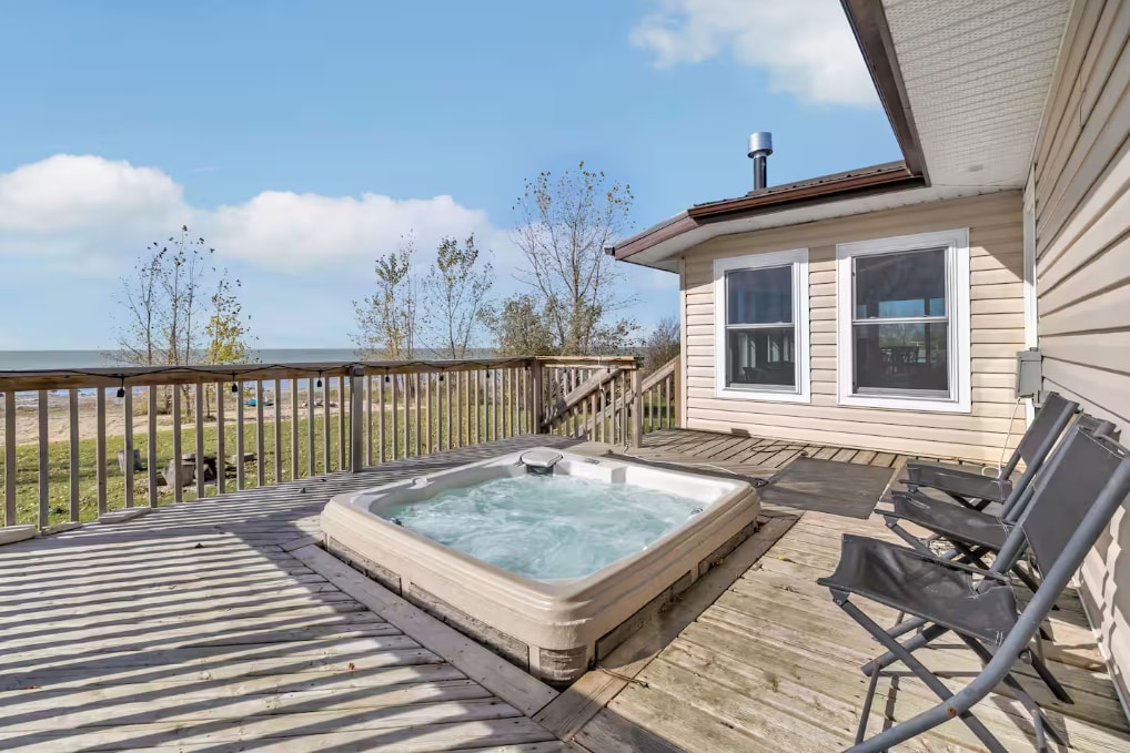 Lakefront/Nordic spa beachfront private paradise . (Hot tub/sauna) Cold plunge in the lake. Stress washes away with the sound of the waves & sunsets. The shallow water entry and no algae/weeds offer fantastic swimming for children and adults. The 3br, 1 bath home offfer all amenities of home . A quick escape from city life just 45 minutes from WPg, no fishing off shoreline. No fish cleaning in house Please refrain from using neighbours (south) beach Dogs must be leashed at all times