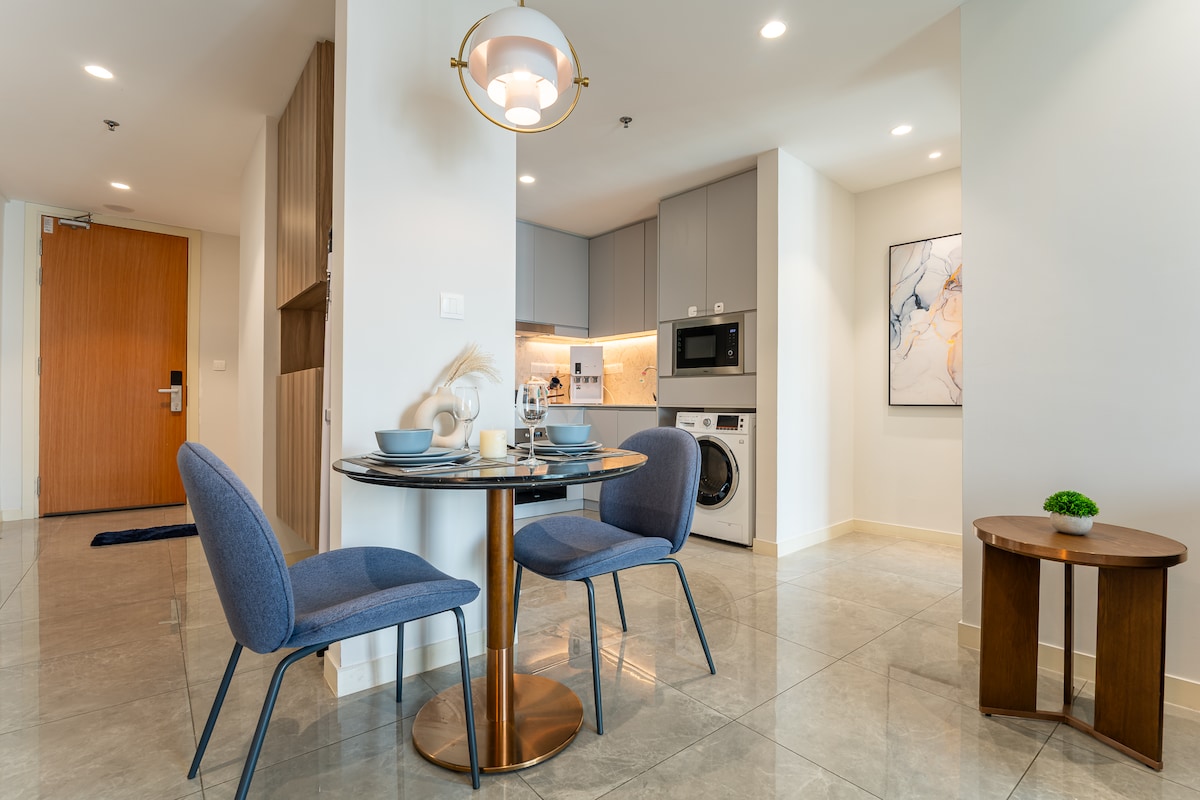 🏡 1-Bedroom Apartment with Balcony Spacious and comfy, featuring 1 King beds — perfect for a relaxing stay. 🛁 Bathroom: Equipped with hot water for a refreshing shower with Bathtub 🛠️ Facilities include: Pots, pans, utensils, rice cooker, water dispenser Body wash, shampoo, hand wash Refrigerator, microwave, kettle, rice cooker, washer/dryer Korean high-end water dispenser, sugar ,salt , oil 🌐 Connectivity: Free 100 Mbps Wi-Fi — fast and reliable 🚗 Parking: 1 parking space