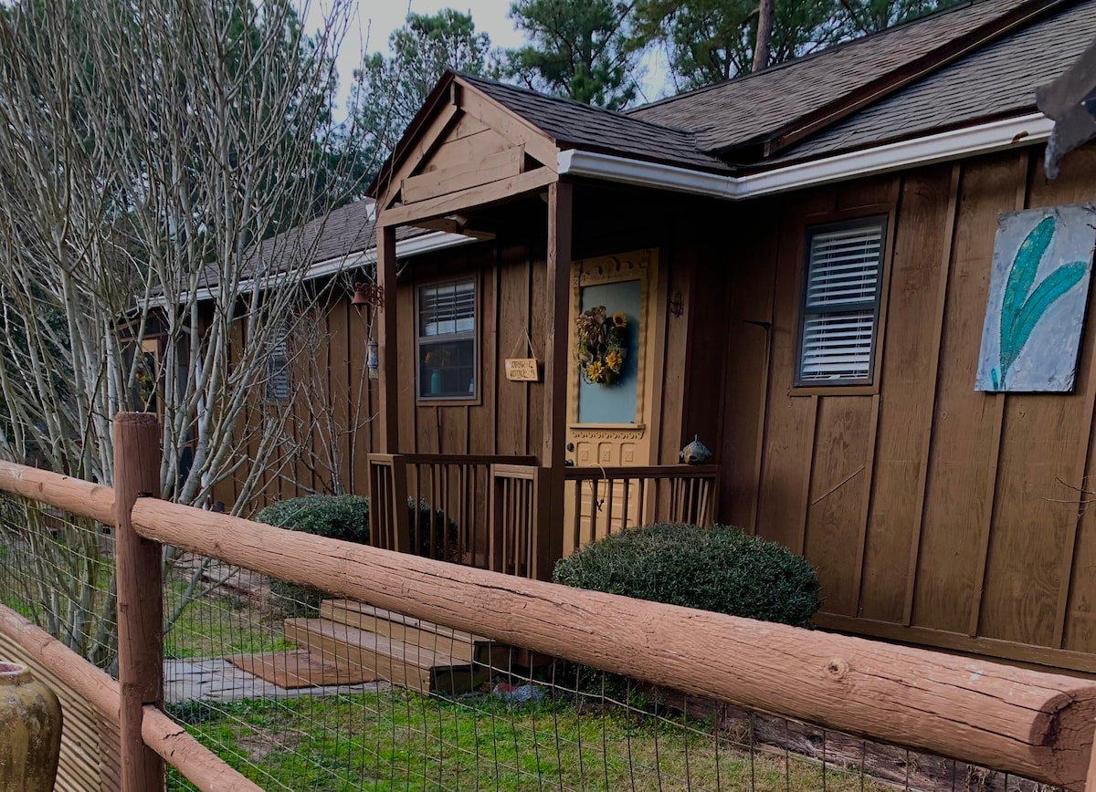 울창한 소나무 숲 한가운데에 자리한 아늑한 전원주택에서 휴식을 취하고 긴장을 풀어보세요. 이 숙소는 앤티크 애쉬 우드 바닥, 높은 천장, 따뜻한 벽난로, 고전적이고 소박한 특성으로 지어져 매력적이고 집처럼 편안한 느낌을 줍니다. 숙박 기간 동안 스크린 벽이 있는 현관 베란다에서 휴식을 취하며 와인 한 잔을 마시며 현지 야생동물이 돌아다니는 것을 보거나 양철 지붕에 비가 내리는 소리를 들을 수 있습니다.