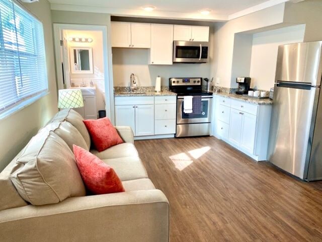 This picturesque Airbnb is a hidden gem nestled along a canal, one minute boat ride to the Caloosahatchee River. The living room, bathed in natural light is perfect for taking in the scenic views. The spacious bedroom has a king-size bed, ensuring a night of blissful rest. The full kitchen is equipped with all modern appliances. Close to Sanibel & Fort Myers Beach. Bring your boat & dock it on the seawall, ready to set sail whenever your heart desires. Book now - your coastal paradise awaits!