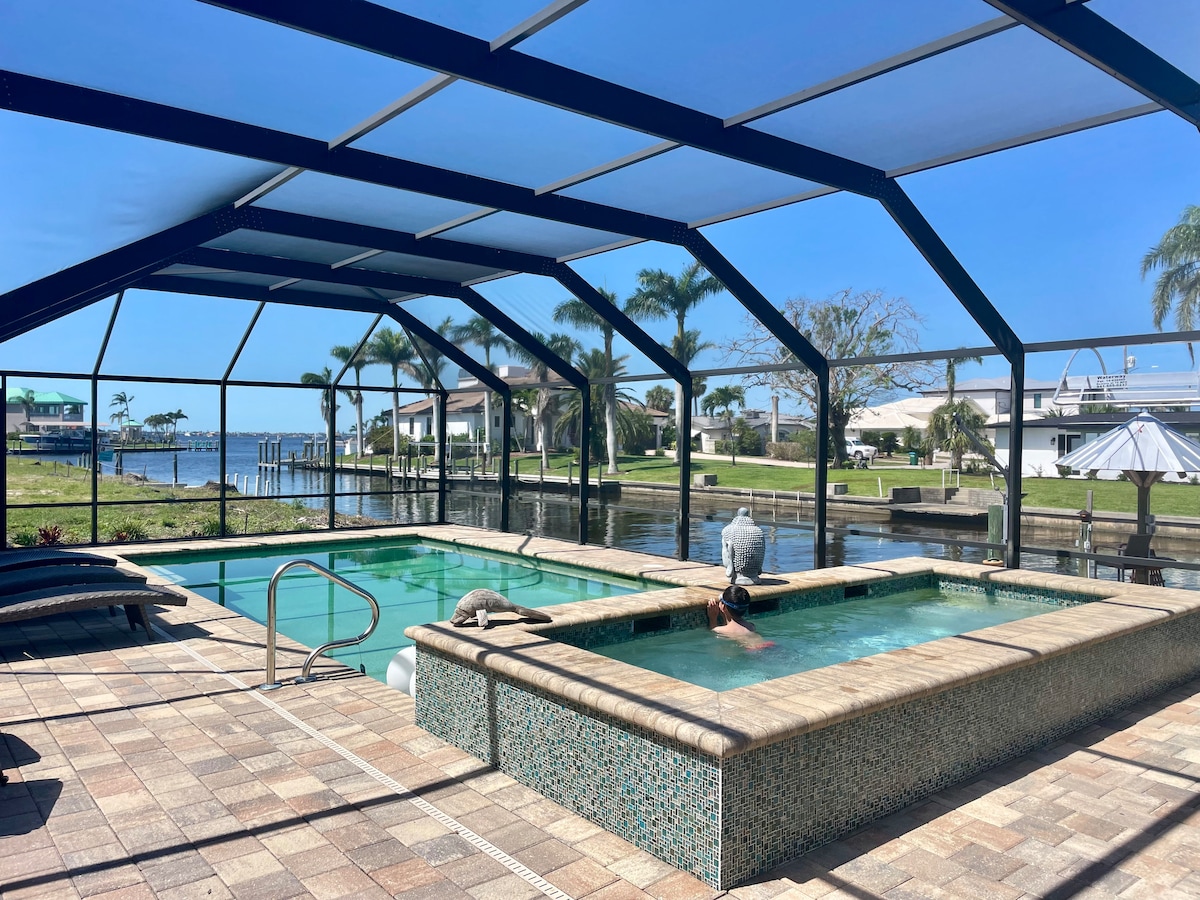 Enjoy the best of the Cape Coral Yacht Club neighborhood. We offer beautifully restored Terrazzo floors along with all new cabinetry, appliances and furniture. The interior of the house has been greatly improved since Hurricane Ian. The lanai, pool and waterfront offer you serene splendor and beauty that you will not want to leave. We provide the most convenient location in Cape Coral, just one mile from the downtown restaurant district.
