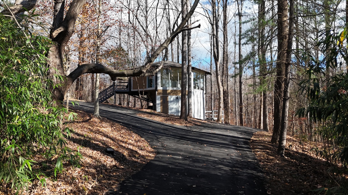 이 달콤하고 절충적인 타이니 하우스는 평화로운 휴가를 위해 여러분을 맞이할 준비가 되어 있습니다. 현관 베란다에서 탁 트인 전망을 즐겨보세요. 조용한 시간을 활용하여 소설을 마치거나 삶의 스트레스를 풀어보세요. 숙소를 걸으며 산책하거나, 연못에서 낚시를 하거나, 화덕에서 마시멜로를 구워보세요. 예의 바른 반려동물을 환영합니다. 이 위치는 떠나고 싶지만 불과 몇 분 거리에 생활의 편리함을 원하는 분들에게 완벽한 장소입니다.