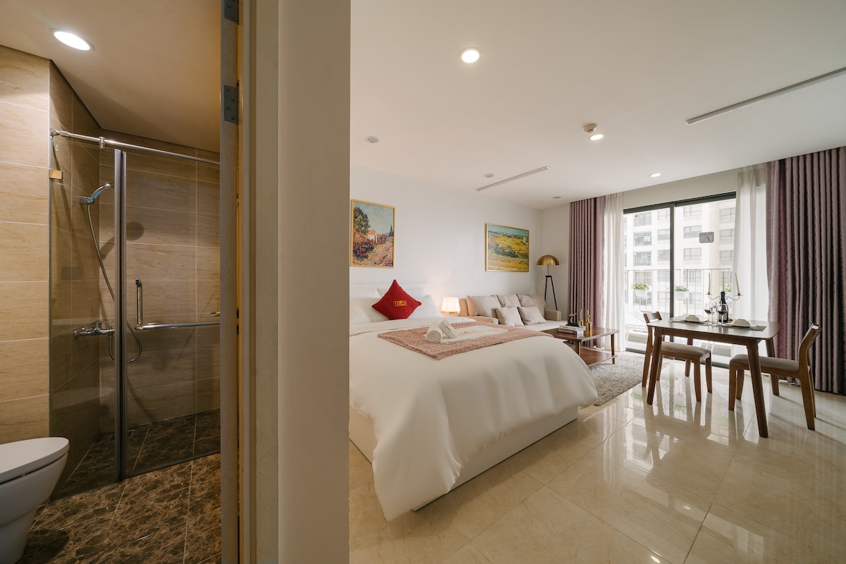 High-end apartment at Vinhomes Smart City with full amenities for couples, tourists or business travelers. Here you will rest and relax in a peaceful, luxurious space. Utilities include: 1. Indoor swimming pool 2. Outdoor swimming pool (seasonal) 3. Gym 4. Working Space 5. Shopping and entertainment at Vincom Mega Mall. 6. Check-in and take virtual photos at Japanese Garden 7. Stroll between the blue sea and white sand in the heart of Hanoi. 8. BBQ Party