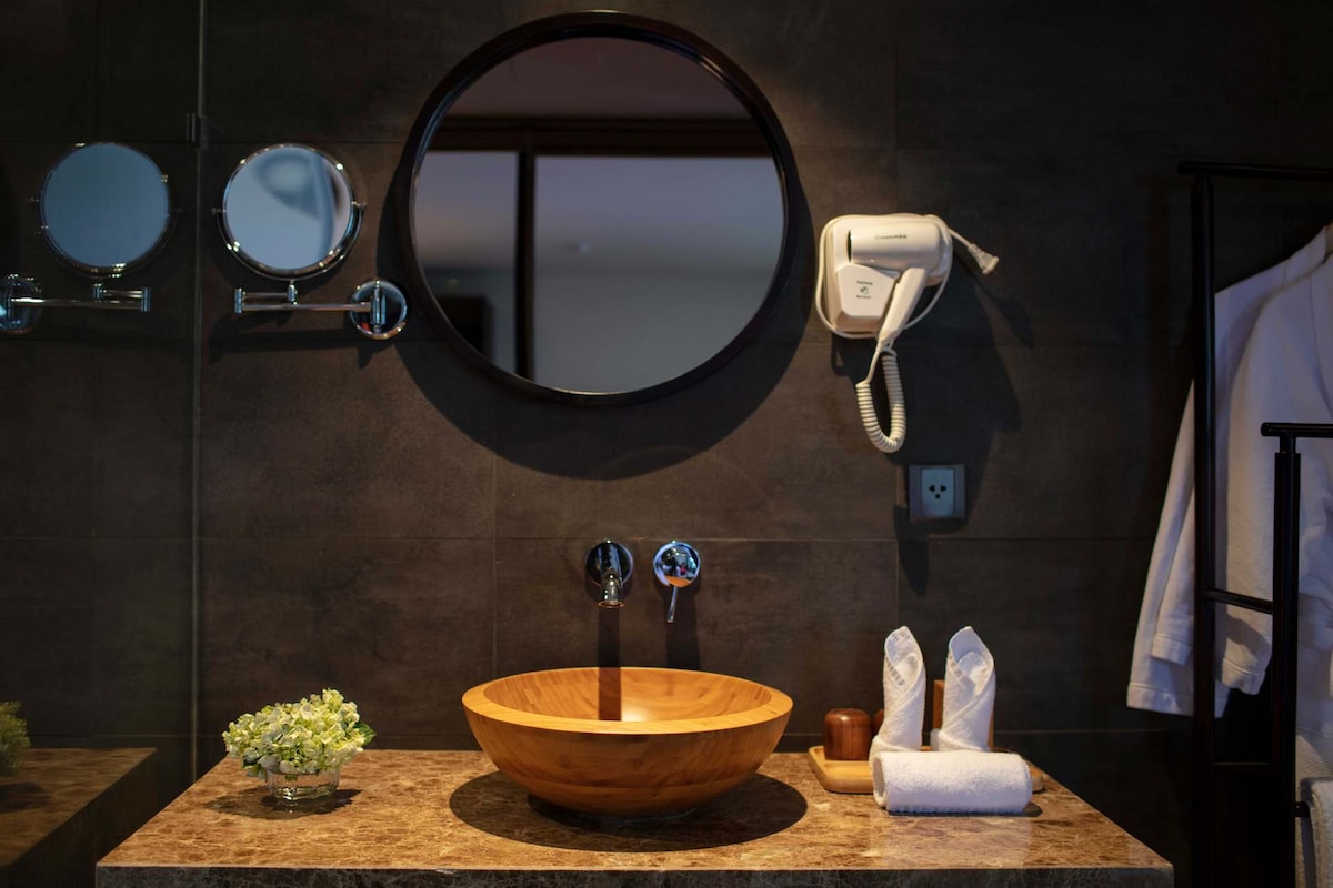 객실의 가장 하이라이트는 현대적이고 전통적인 텍스트의 조합입니다.