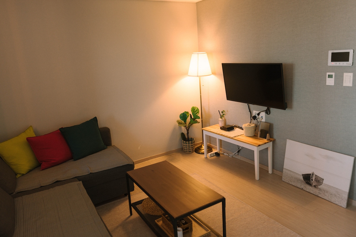 There is pine tree trail park near my house so we can refresh with the cool air. In the winter season, there are wonderful ski-slopes where the 2018 winter Olympics will be held taking 30 min. to drive. convenient location 5min. walk to pine tree trail park and the beach 15 min walk to the port to get a ferry to Ulleungdo & Dockdo(Far-east territory in Korea) 10-15min. to drive to the train station and the bus terminal 30 min. to the ski resort