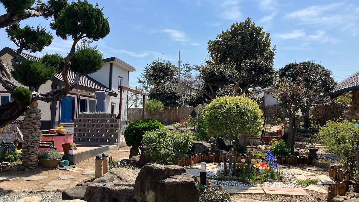 12월새롭게 바뀐 호텔식 감성숙소*제주돌담 자쿠지 *넒은정원앞 바다뷰*독채풀빌라 뮤즈하우스