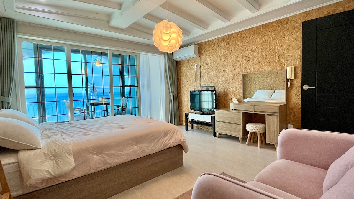 MonDieu! 제주 첫날 마지막날에 딱! l 공항 10분 오션뷰 더블룸 l 황홀한 바다뷰