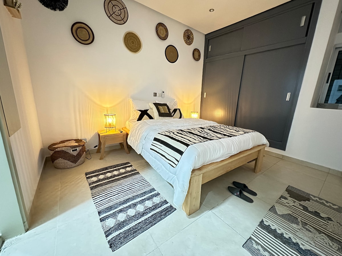 에어비앤비에서 🏅상위 10%에 속하는 인기 숙소 4구역 한복판에 위치한 세련된 3베드룸 아파트를 즐겨보세요. 밝고 우아하며 아늑한 분위기를 자랑하는 이 숙소는 세련된 인테리어, 부드러운 톤, 금색 포인트, 현지 예술품으로 꾸며져 있습니다. 호텔급 침구, 시설이 완비된 주방, 매일 청소 서비스가 포함되어 있어 휴식을 취하거나 원격으로 일하기에 적합합니다. 연중무휴 보안 서비스가 있어 아비장의 가장 활기찬 동네에서 안심하고 머무실 수 있습니다.