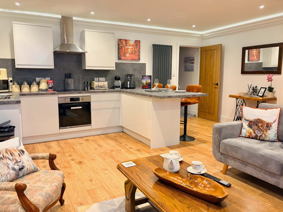 🌿 올리브와 엠버🔥 | 따뜻함과 평온함이 만나는 시간 요크 시내 중심가 근처의 아름답게 개조된 창고에 있는 고요한 2베드룸 숙소. 따뜻한 색조, 자연스러운 질감, 고품질의 마감재가 조화를 이룬 세련된 숙소로 고요하고 고급스러운 느낌을 선사합니다. 개방형 거실 공간에서 휴식을 취하거나 화덕 옆의 요정 조명 아래 반사적인 안뜰 정원에서 휴식을 취하세요. 전용 주차장. 요크 시내 중심가 가장자리까지 자전거 도로로 15~20분 거리에 있습니다.