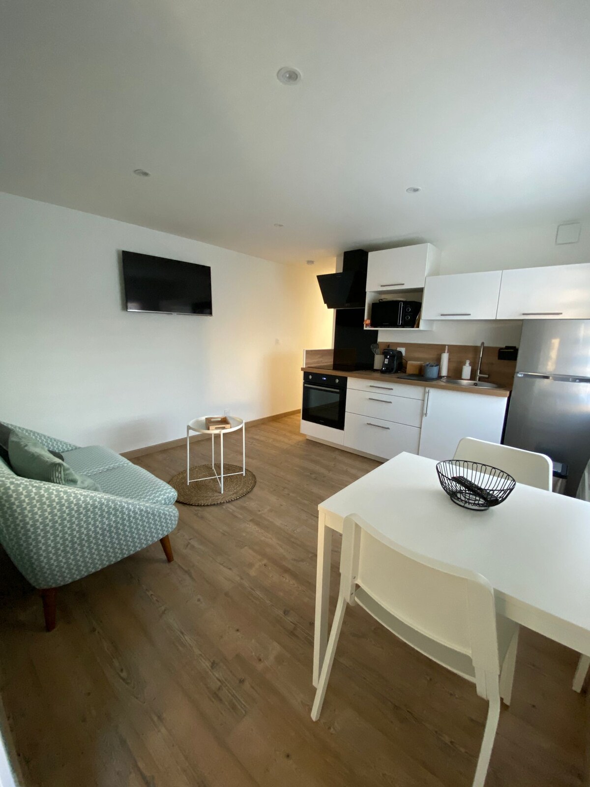 Logement refait à neuf spacieux et lumineux en sous sol de notre maison comprenant: - Une cuisine équipée avec four, micro-onde, plaque ,frigo, grille pain, cafetière, bouilloire, presse agrumes. Ainsi que tous les ustensiles necessaire. - Un salon avec un véritable canapé lit ( 140x 190 cm) et une télévision. Un authentique espace cocooning et chaleureux. - Une salle de bain avec douche et toilettes - Une chambre avec lit de 140x190 cm (matelas à mémoire de forme neuf ) avec télé et dressing.